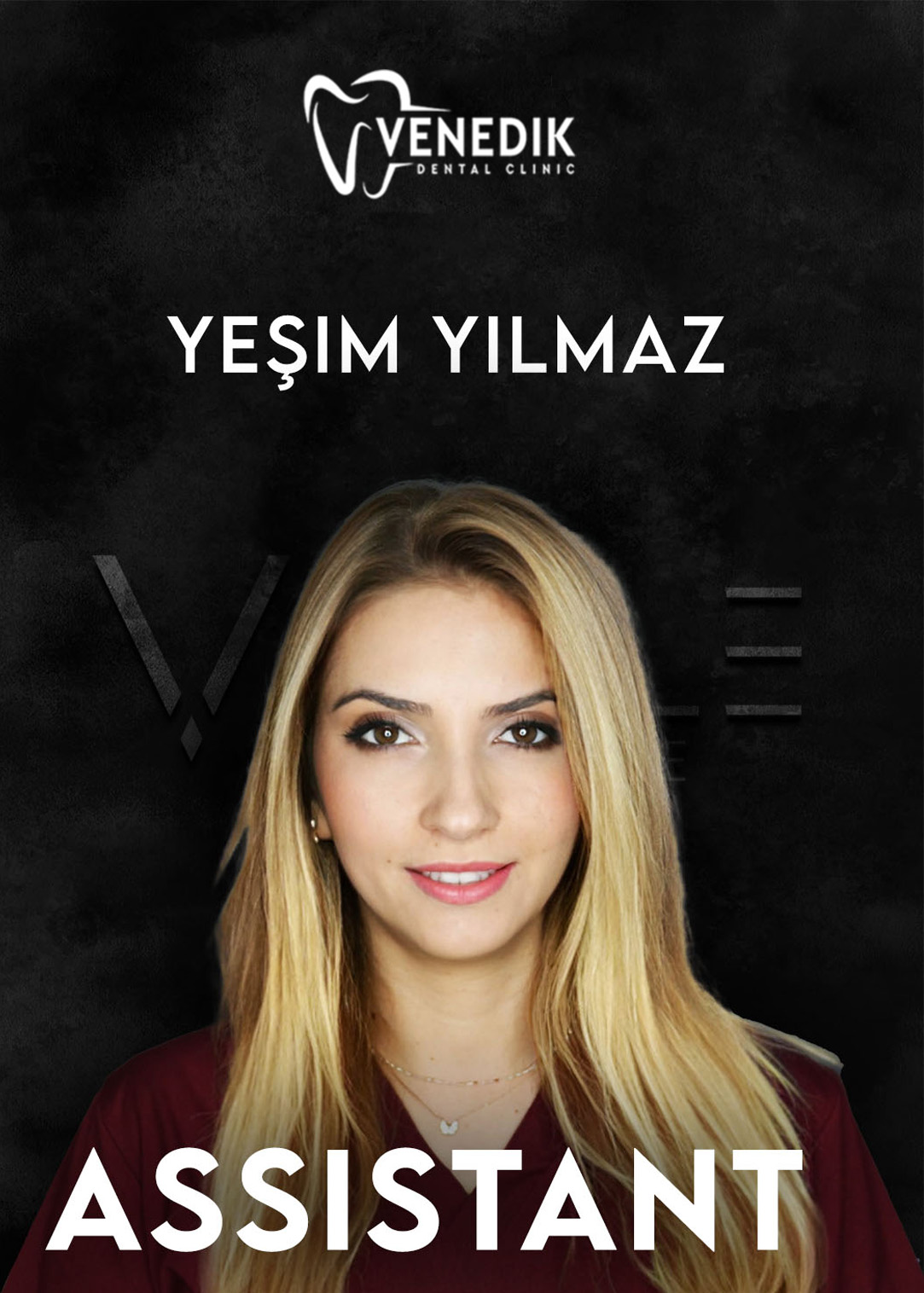 And currently serving at Venedik Dental Clinic, in the field of Smile Design, Zirconium Crowns, Porcelain Crowns, Laminate Veneers, and Removable fixed prostheses on implants.